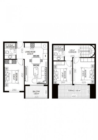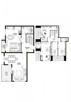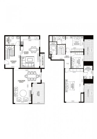 The layouts feature a living room, dining area, open or closed kitchen options, one or two bathrooms, and one or two balconies. Some apartments also include a private garden. Penthouses feature a two-storey configuration and larger terraces. Every residence is equipped with a climate control system.